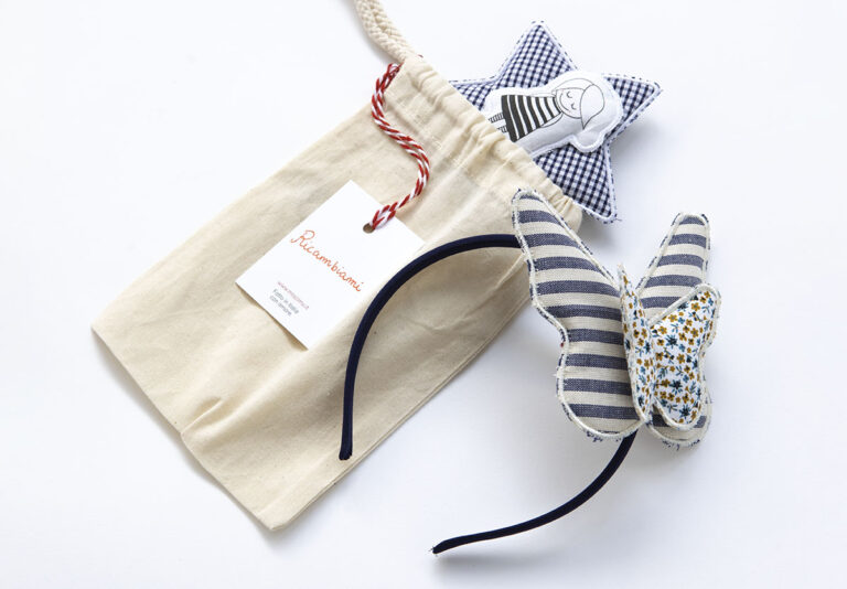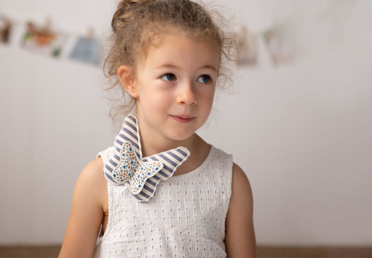 Cerchietto magico, nato da un’idea super divertente. Il cerchietto, rivestito in maglina di nylon, è corredato da due doppie applicazioni imbottite e ricamate intercambiabili. Per bimbe trasformiste che passano con disinvoltura dalla stella alla farfalla!